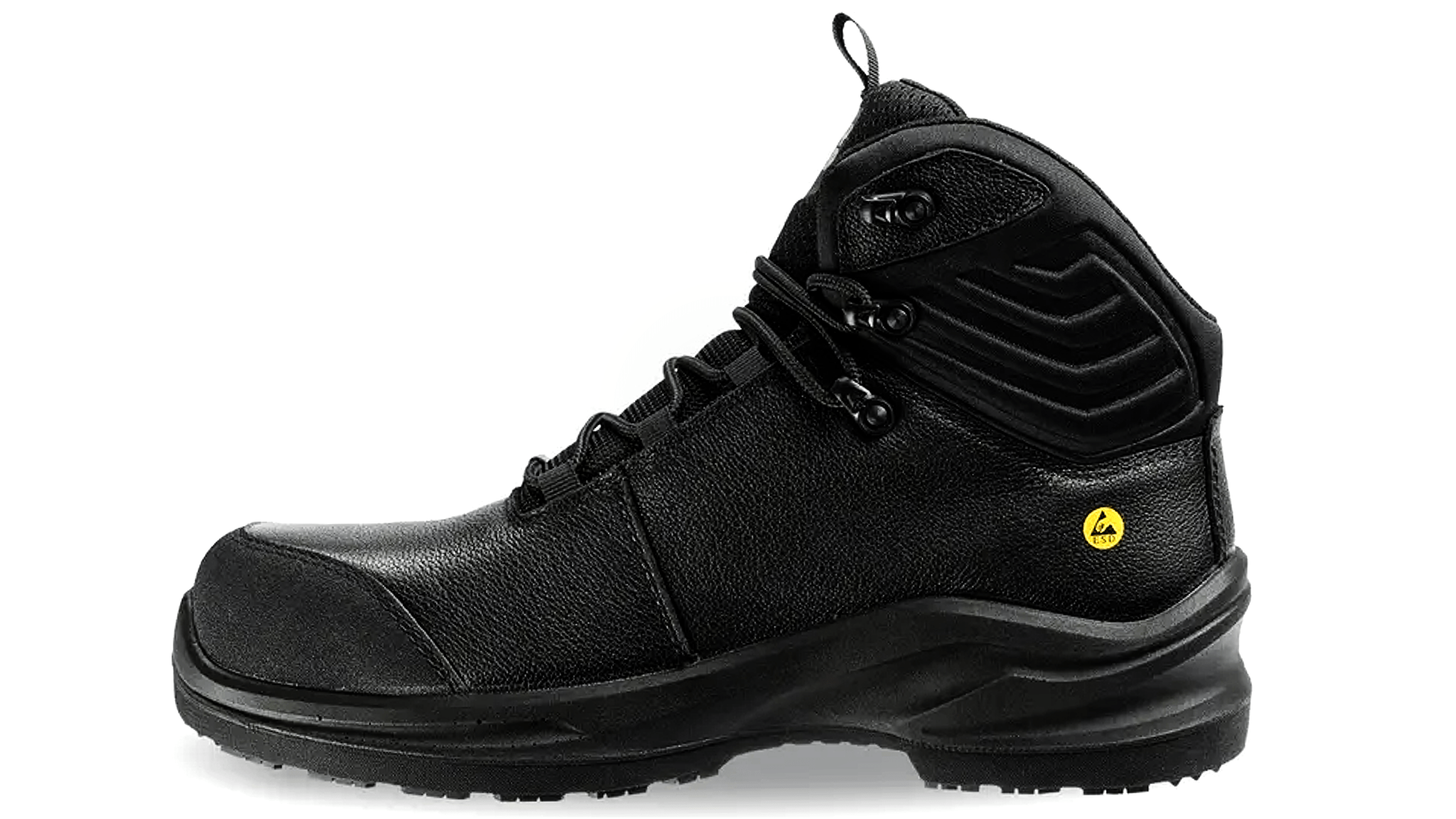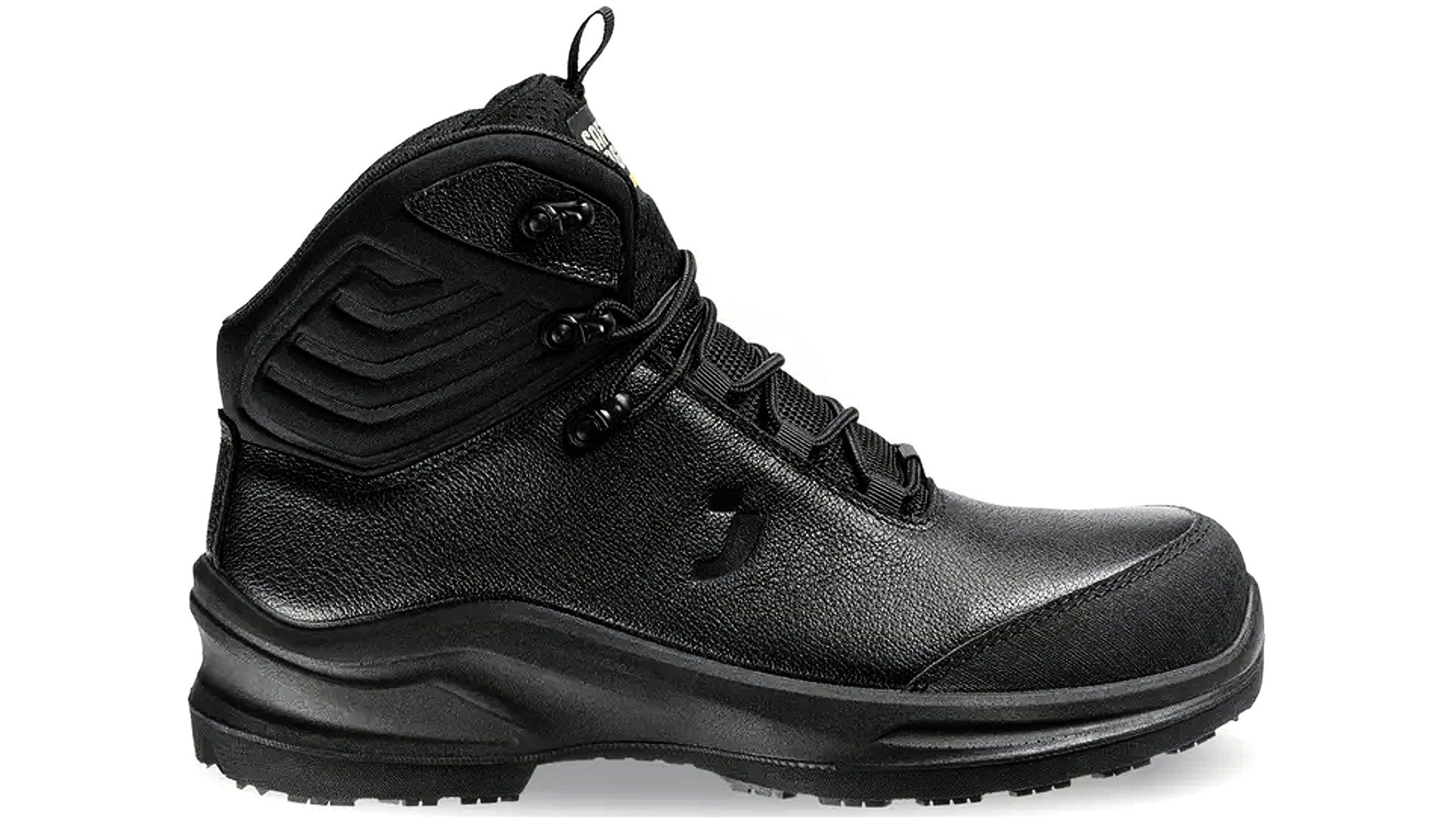 Metal-free, super comfortable and mid-cut safety boot with soft leather upper and Tiger Grip Technology rubber outsole